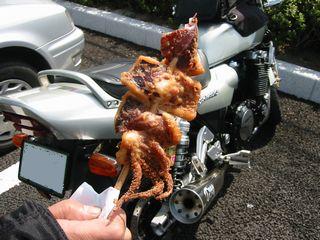 | 季節感ある「鮎の塩焼き」 | 季節感がまるで無い「イカ焼き」 |