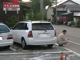 | 会津ドライブ時の牛乳屋食堂「手打ちラーメン」 | 不安から駐車場に居座るむろい堂!(笑) |