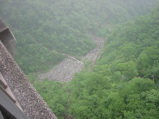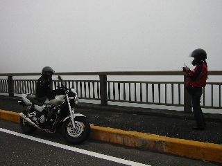 車やバイクが何台か橋上駐車しているので、我々も停まってみた。